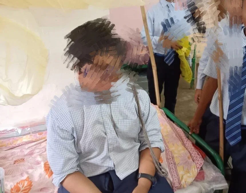 परिजनों ने बताया कि, बीते 17 और 18 सितम्बर को विद्यालय परिसर में उनके पुत्र के साथ गंभीर घटनाएं घटी। उनके पुत्र को कक्षा 8वीं और 7वीं के कुछ छात्रों द्वारा जबरन धमकाते हुए उसके गले में रस्सी बांधकर कहा कि, पंखे से लटक जाओ, अन्यथा हम तुम्हारा गला दबाकर मार डालेंगे। एक छात्र ने तो उसका गला भी दबाया। कॉपियों छुपाई, वस्तुएँ तोड़ीं गई। छात्रावास में बिस्तर पर पानी-मिट्टी डाला। कई बार थाली, गिलास और उसकी चप्पल बाहर फेंक दी गई।
