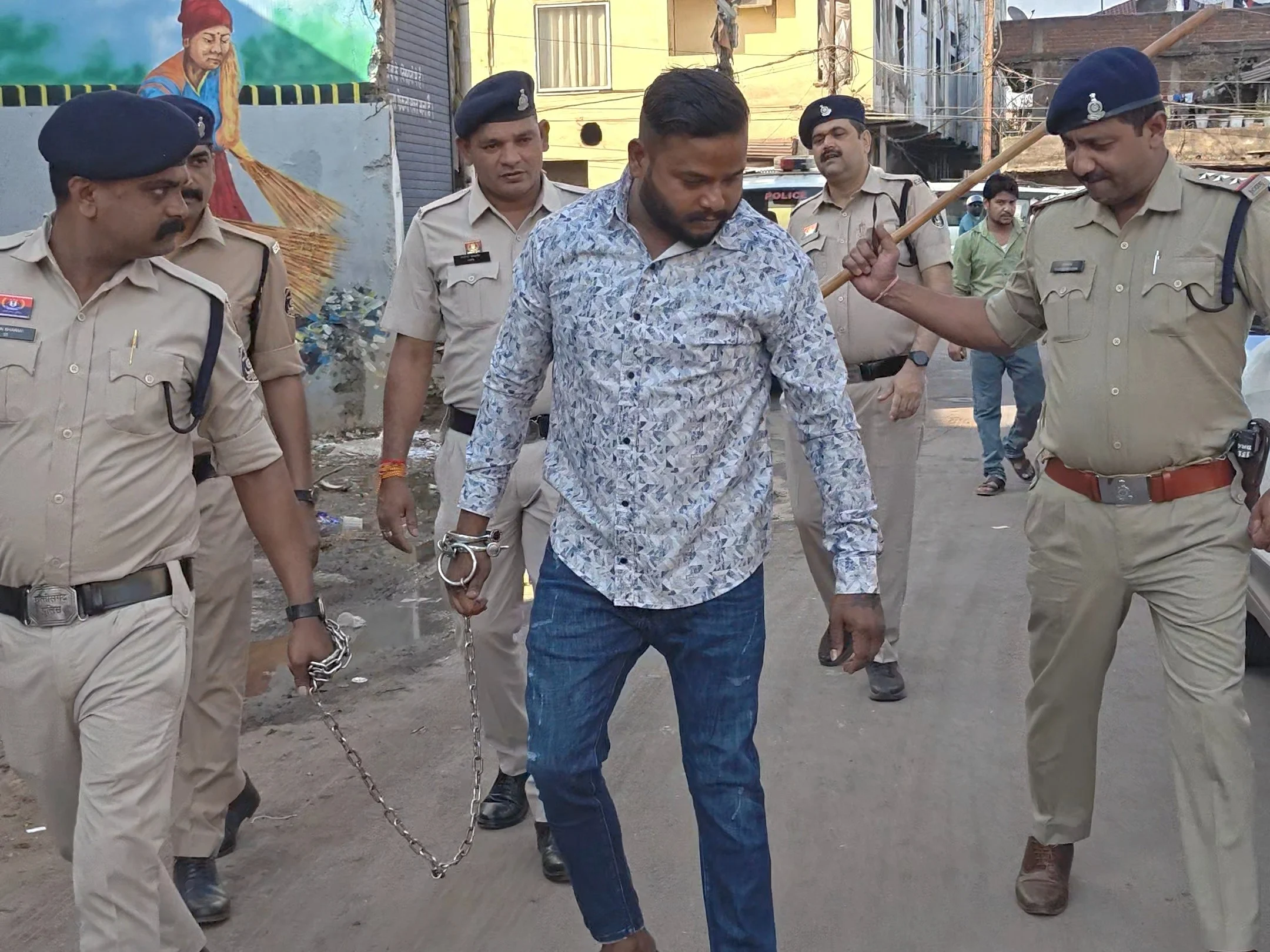 छत्तीसगढ़ के भिलाई में अपनी महिला स्टाफ को मीटिंग के बहाने बुलाकर छेड़छाड़ करने वाले कुख्यात बदमाश लक्की जार्ज के खिलफ पुलिस ने बड़ा एक्शन लिया है । छावनी पुलिस ने आज आरोपी का उसी जगह जुलूस निकाला, जहाँ उसने इस घिनौनी घटना को अंजाम दिया था। पुलिस ने आरोपी की गुंडई का डर खत्म करने के लिए बीच रास्ते में उसकी जमकर धुनाई भी की और बाद में उसे जेल भेज दिया।