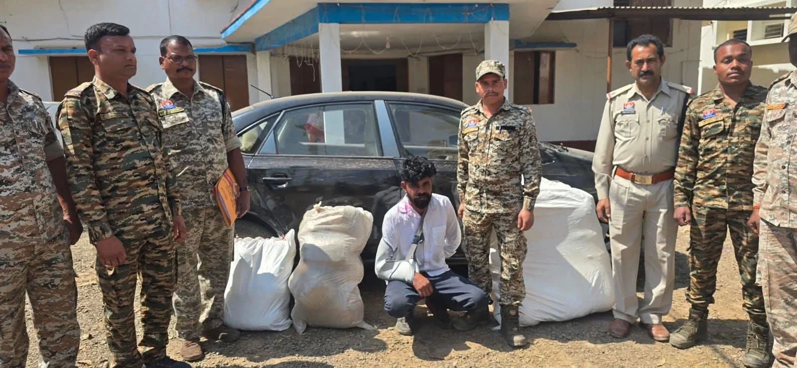 CG NEWS:केशकाल पुलिस: पुलिस अधीक्षक महोदय पंकज चन्द्रा के निर्देशानुसार अतिरिक्त पुलिस अधीक्षक कपिल चंद्रा एंव पुलिस अनुविभागीय अधिकारी केशकाल अरूण कुमार नेताम के पर्यवेक्षण में अवैध गांजा, शराब तस्करी बिक्री व असामाजिक तत्व और सार्वजनिक स्थानो पर शराब पीने वाले के विरूद्ध अभियान चलाया जा रहा था अभियान कार्यवाही मुखबीर से सूचना प्राप्त हुआ की एक काले रंग का वोक्सवैगन कार क्रमांक MH02 BR 0045 में कुछ लोग अवैध मादक पदार्थ गांजा छिपा कर उड़िसा से रायपुर की ओर जगदलपुर केशकाल के रास्ते से जाने वाले है। कि सूचना पर थाना केशकाल के सामने एमसीपी लगाकर उक्त कार का इंतजार किया जा रहा था कुछ समय बाद उक्त कार आने पर रोकने का प्रयास किया गया जो नही रूका और कांकेर की ओर तेज रफ्तार में भागने लगा जिसे हमराह स्टाप गवाह के मय शासकीय वाहन से पीछ किया गया जो घाटी में नही रूकने से पुलिस सहायता केन्द्र दादरगढ के प्रभारी को हालत से अवगत कराते हुए कैम्प के सामने बेरीकेट लगाकर रोकने का प्रयास किया परन्तु बेरीकेटिंग को ठोकर मारते हुए अनियंत्रित होकर रोड से नीचे उतर गया पुलिस के पकड से बचने के लिए वाहन चालक कुद कर भागने लगा जिसे घेराबंद कर पकडे नाम पता पुछने पर अपना नाम शैतान सिंह गौर पिता महावीर सिंह गौर उम्र 28 वर्ष निवासी मुरलिया तहसील बैगुन जिला चितौडगढ राजस्थान का होना बताया जिसे मुखबीर सुचना से अवगत कराते हुए कार की तलाशी लेने पर डिक्की के अंदर 27 पैकेट भूरे रंग के सेलो टेप से पैक किया हुआ कुल जुमला वजन 112.076 किलोग्राम किमती 1120760 रूपये व वोक्सवैगन कार क्रमांक MH02 BR 0045 को बरामद कर आरोपी के विरूद्व एनडीपीएस एक्ट के तहत कार्यवाही कर गिरफ्तार कर माननीय न्यायालय पेश का न्यायिक अभिरक्षा में भेजा गया है