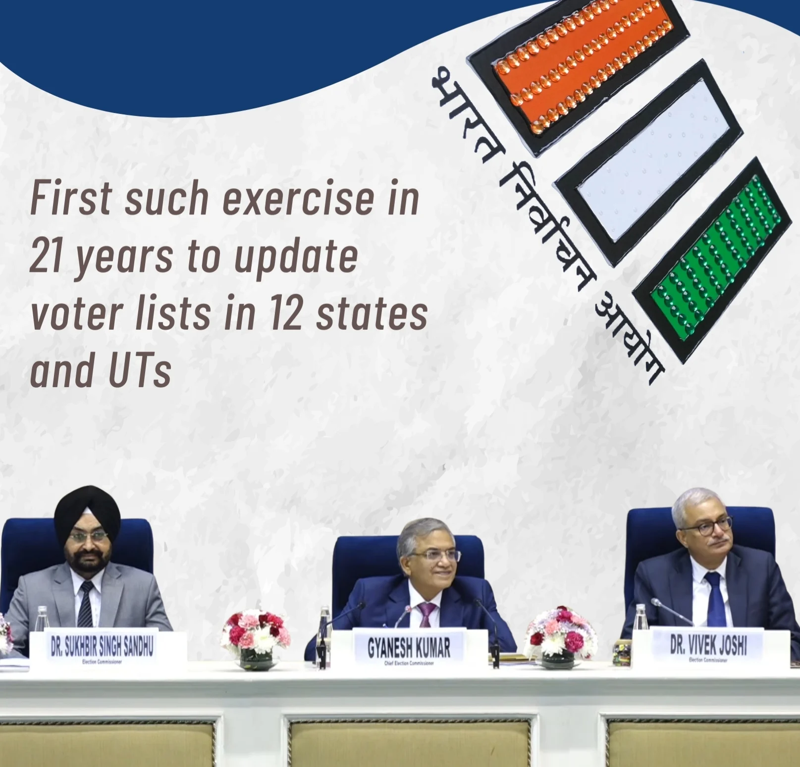 21 सालों में यह पहली बार हो रहा है, इस रिवीजन में 12 राज्यों और केंद्र शासित प्रदेशों के 51 करोड़ वोटर शामिल होंगे। घर-घर जाकर गिनती 4 नवंबर, 2025 से शुरू होगी और फाइनल लिस्ट 7 फरवरी, 2026 को पब्लिश की जाएगी। इस कवायद का मकसद एक सही वोटर लिस्ट बनाना है, जो खासकर इसलिए महत्वपूर्ण है क्योंकि इसमें शामिल चार राज्यों में 2026 में विधानसभा चुनाव होने वाले हैं।