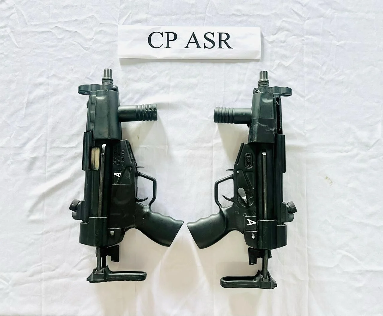 एक बड़ी सफलता में, अमृतसर कमिश्नरेट पुलिस ने नाकाबंदी के दौरान अवैध हथियारों की एक खेप को नाकाम करते हुए, दो 9MM सब-मशीन गन और एक खाली मैगज़ीन बरामद की है।