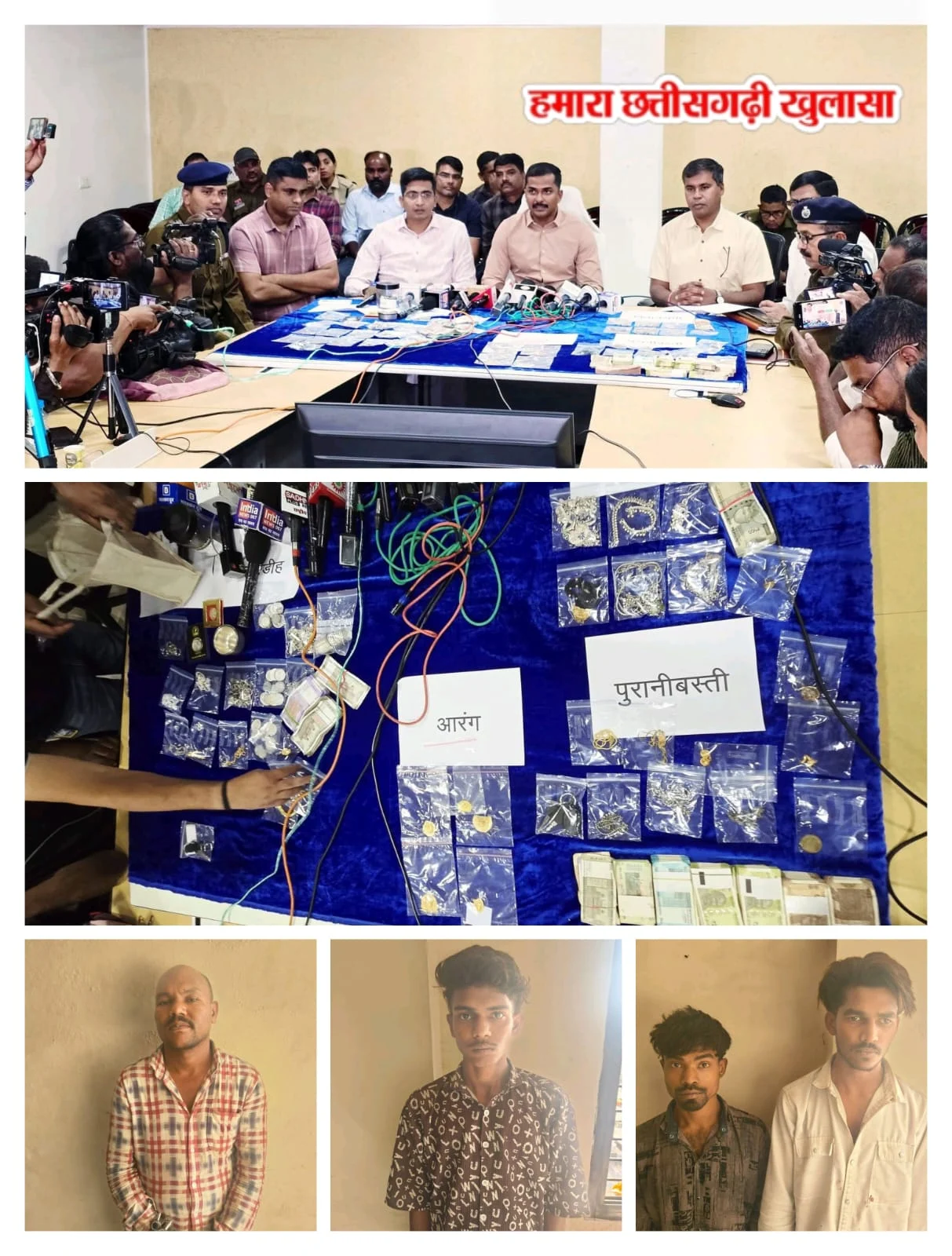  थाना खम्हारडीह, डी डी नगर, पुरानी बस्ती, आरंग, विधानसभा, पंडरी रायपुर सहित जिला बलौदा बाजार के पलारी की चोरी की घटनाओं पर एसीसीयू टीम की बड़ी सफलता।