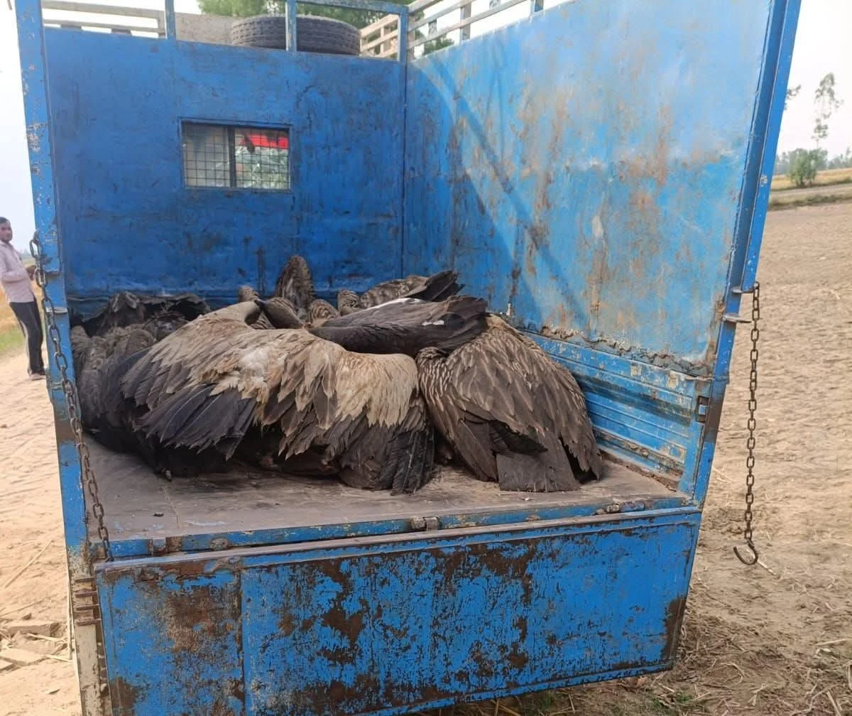 दुधवा बफर जोन (डीबीजेड) के एक कृषि क्षेत्र से मंगलवार को दो दर्जन से अधिक गिद्धों के शव और पांच बेहोश गिद्ध बरामद हुए, जिनके सभी को हिमालयी ग्रिफॉन माना जा रहा है, जिससे वन अधिकारी व्याकुल हो गए हैं।