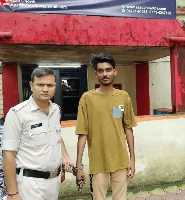 रायपुर:मामले का संक्षिप्त विवरण इस प्रकार है कि दिनांक 02.09.2025 को मुखबीर से सूचना प्राप्त हुई कि आमापारा कारी तालाब गार्डन गेट के पास मे एक व्यक्ति अपने हाथ में चाकू रखकर लहराते हुए आम जनता को डरा धमका रहा है। उक्त सूचना पर थाना आजाद चौक पुलिस द्वारा मौके पर पहुंचा] मौका पर आरोपी फैज अली उर्फ फज्जु पिता लियाकत अली उम्र 25 वर्ष सा0 खपराभठठी थाना आजाद चौक जिला रायपुर का चाकू लहराते ,डराते धमकाते मिला जिसे समक्ष गवाहन को घेराबंदी कर पकड़ा गया तथा आरोपी के हाथ से एक नग चाकू छीनकर आरोपी तथा चाकू को कब्जे में लिया गया। आरोपी को आज दिनांक 02.09.2025 को विधिवत गिरफ्तार कर थाना आजाद चौक मे अपराध क्रमांक 259/2025 धारा 25,27 आर्म्स एक्ट पंजीबद्ध किया जाकर आरोपी को न्यायिक रिमाण्ड में भेजा गया है।